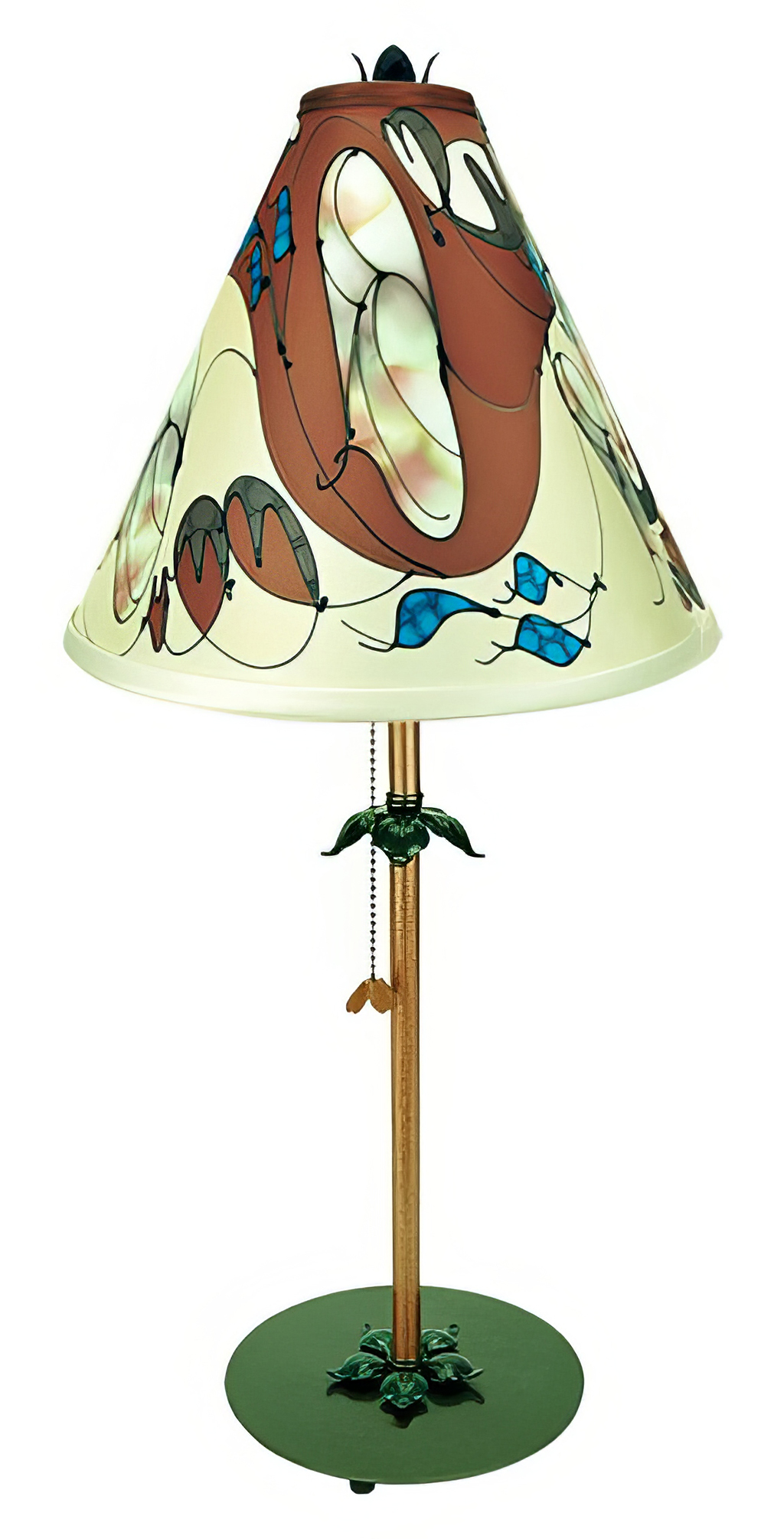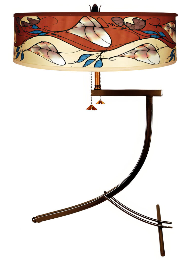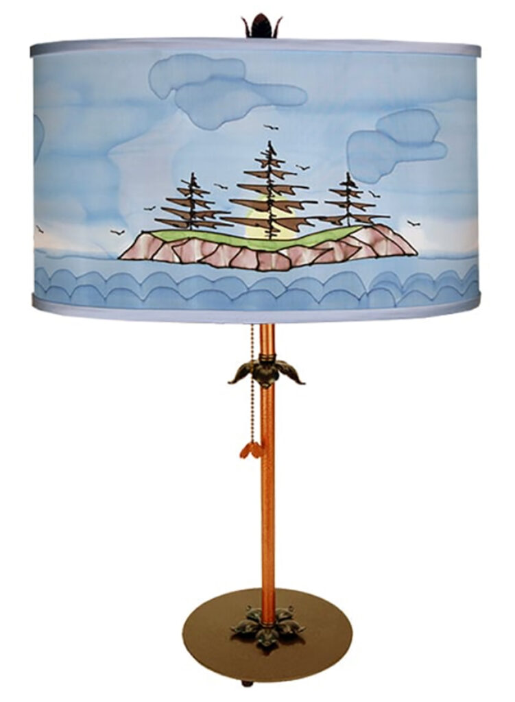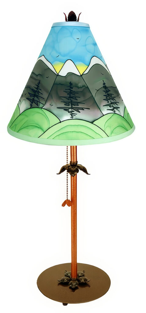 Painting Loten Art Lighting Stuart Loten is a Maine artist and lamp maker who handcrafts distinctive lighting at his Montville studio, Loten Art Lighting. His work balances a heavy hand and a soft touch, moving between metal fabrication and delicate silk painting, a self-taught process that ensures every lamp is one of a kind. After years designing lamps for a major manufacturer, Loten launched his own studio to create functional art that is both expressive and usable, rethinking traditional lamp construction along the way.